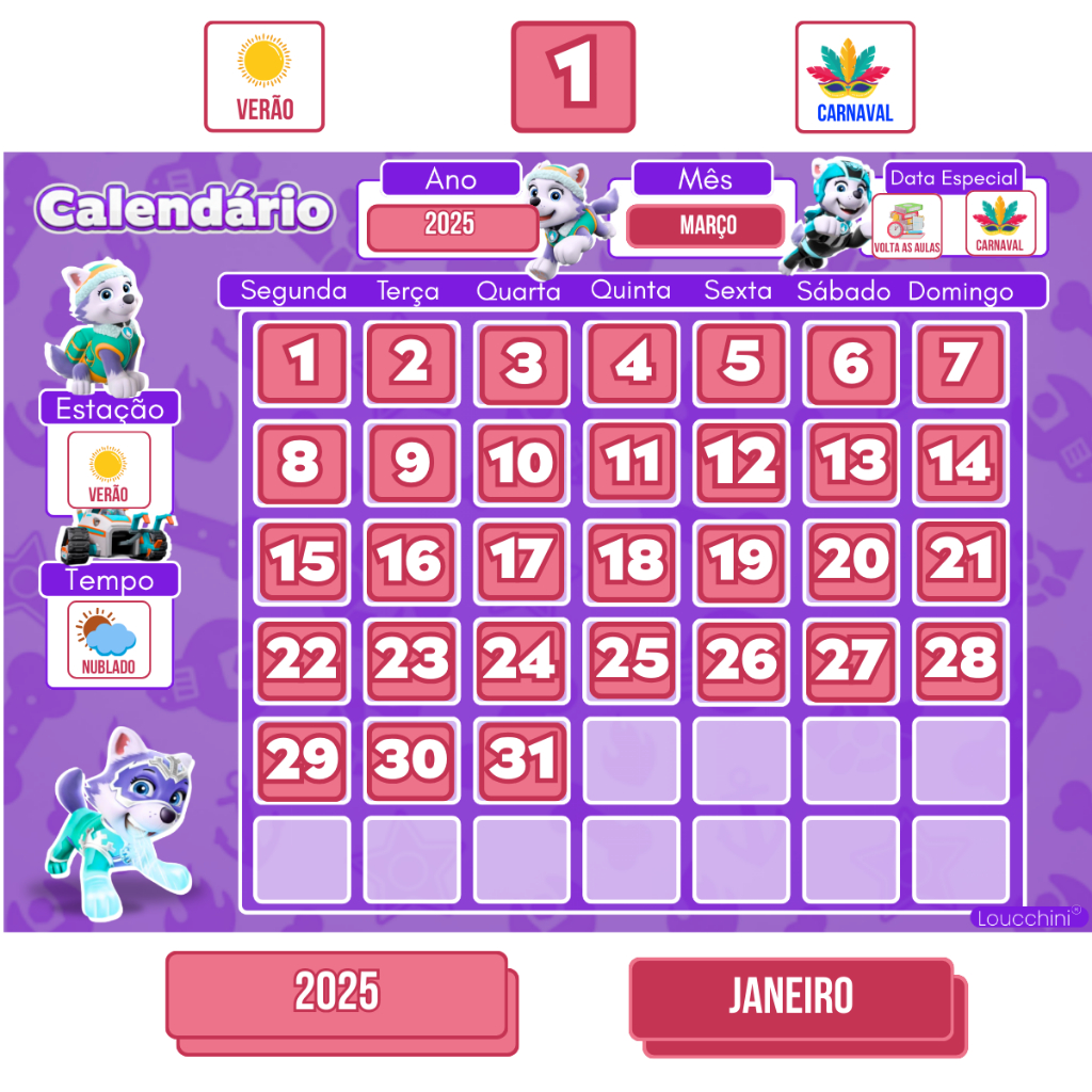 Calendário Magnético Infantil Tema Everest Patrulha Canina para Ensinar Rotina e Organização