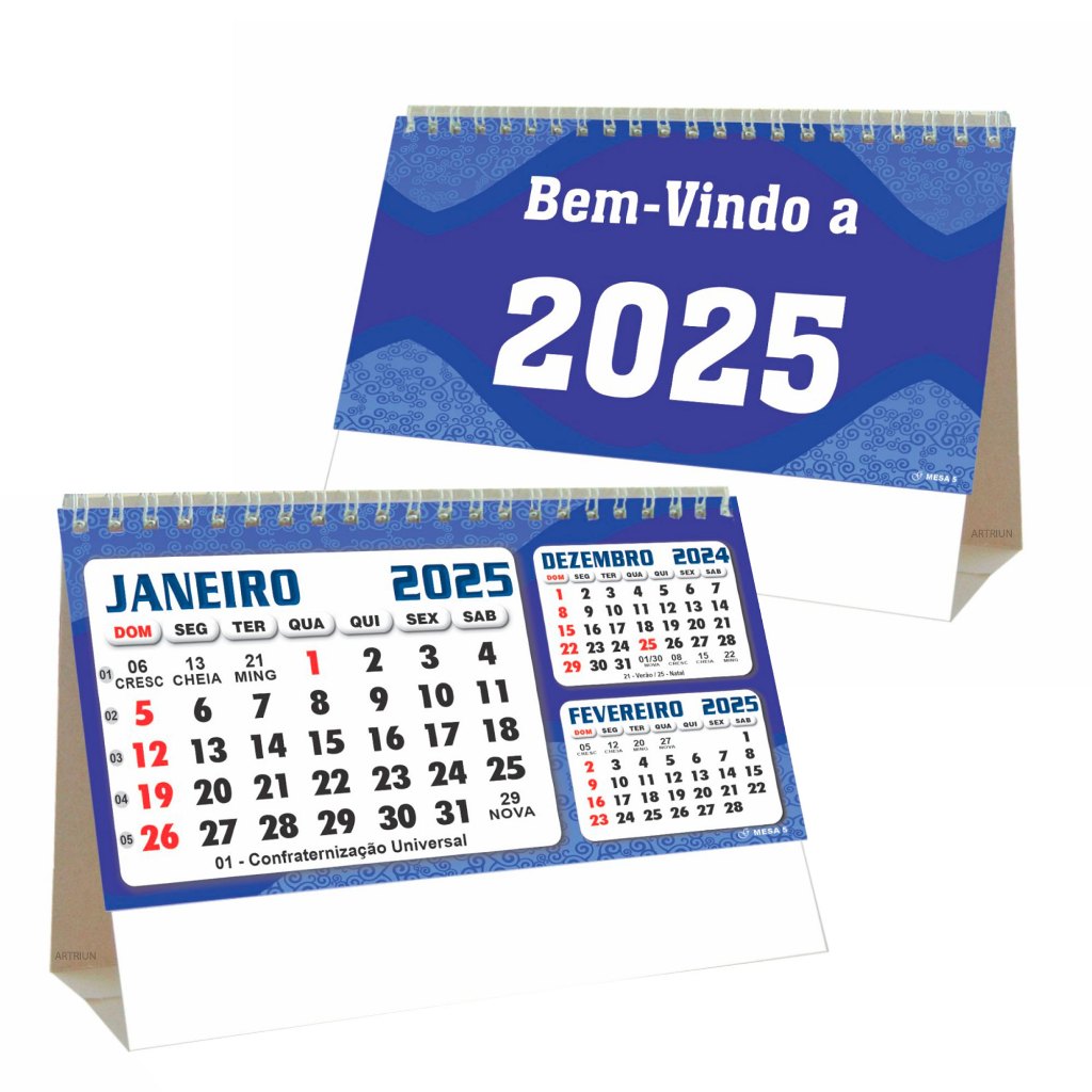 Calendario 2026 Mensal de mesa escolha seu modelo Formato: 18,5 x 13 cm Bloco papel Off-set. Cartela cartão duplex. mesa 7 Bloco papel couche. Cartela cartão duplex. mesa 5 Calendário 12 meses. Acabamento wire-o. Acompanha cartela micro serrilhada para impressão jato de tinta / laser. Área de Impressão: 17 x 3 cm : Valor do Pacote com 1 Unidade Não personalizamos o produto
