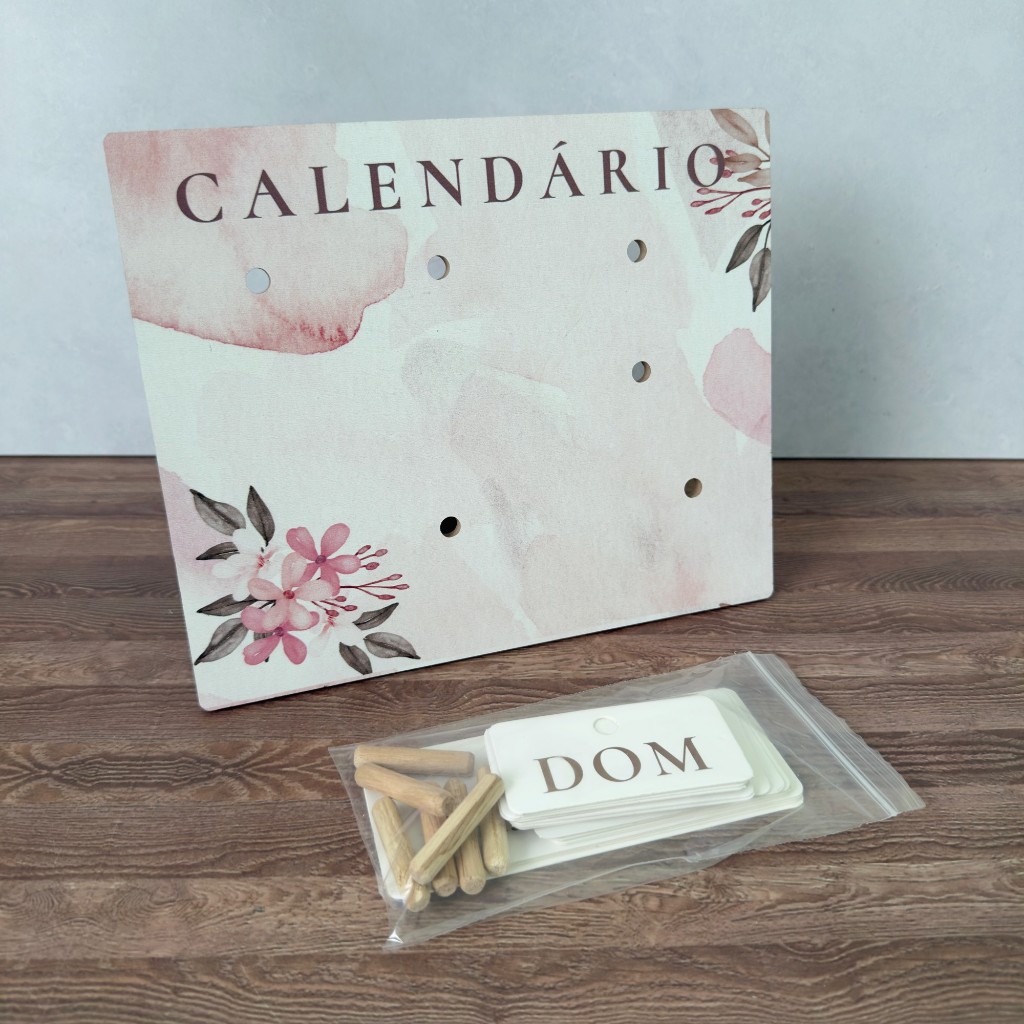 Organize sua rotina e decore seu espaço com este calendário permanente de mesa. Uma solução prática para nunca mais precisar trocar de calendário a cada ano, ele permite ajustar manualmente o dia, o mês e o dia da semana usando as placas inclusas. Além de manter suas datas sempre visíveis, o conjunto acompanha placas com frases motivacionais que podem ser trocadas. É uma peça funcional que traz uma dose diária de inspiração para sua mesa de trabalho, estudo ou home office. ESPECIFICAÇÕES MATERIAL: Base em MDF, pinos em madeira e placas (tags) em PVC ou material similar. DIMENSÃO: 23,8 cm (comprimento) x 0,6 cm (espessura) x 19,8 cm (altura). ITENS INCLUSOS: 1 Base de calendário com suporte de mesa; 6 Pinos de madeira para encaixe; Conjunto de placas de Números (incluindo 0-9); Conjunto de placas com Dias da Semana; Conjunto de placas com Meses do Ano; Conjunto de placas com Frases Motivacionais.