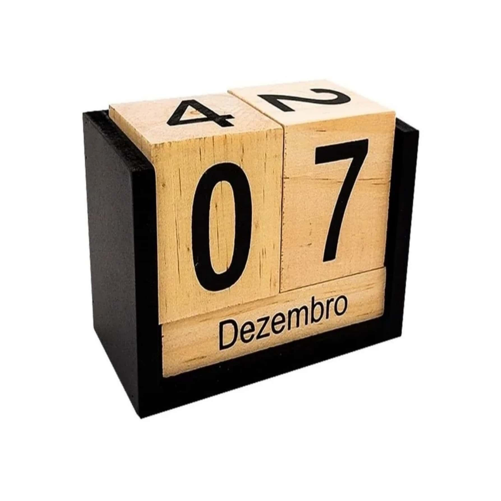 Calendário Permanente Decorativo Cubo De Mesa Madeira