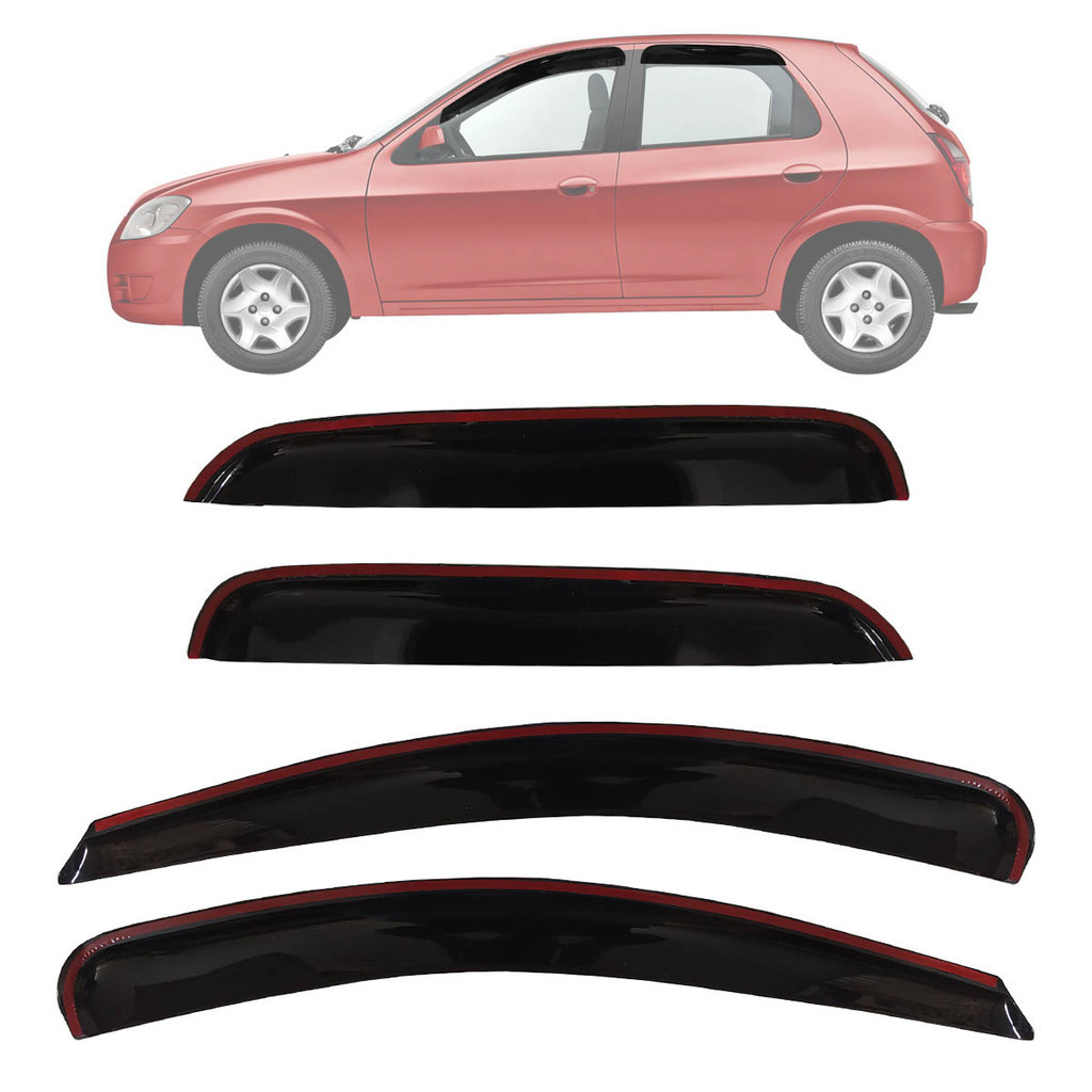 Com nossas calhas mesmo em dias chuvosos nos permitem de abrir as janelas de 4cm a 6cm dependendo do nível da chuva, e reduzindo os ruídos dos ventos quando a janela estiver aberta dando a possibilidade de ventilar o carro. MODELO: Calha de Chuva para Chevrolet Celta 2000 a 2016 4 portas. Especificação Técnica: - 100% Acrílico - Modelo específico do veículo - Tamanho padrão de fábrica - Cor Fumê - Reduz ruídos do vento - Permite abrir em média 4cm do vidro em dias chuvosos - Possui sistema de fixação por fita 3M - Acompanha 1 Primer para limpeza ITENS INCLUSOS: - 1 Conjunto de Calha de Chuva. - 1 Primer para limpeza DIMENSÕES Tamanho padrão conforme as especificações da montadora. INSTALAÇÃO A instalação é feita de forma simples, podendo ser feita por você mesmo. GARANTIA Garantia de 30 dias para defeitos de fabricação. ENVIO IMEDIATO