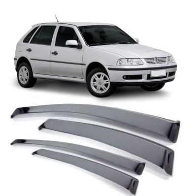 Calha de Chuva Gol Parati G2 G3 G4 Anos : 1998 1999 2000 2001 2002 2003 2004 2005 2006 2007 2008 2009 2010 2011 2012 2013 2014 2015 - 4 Portas Fumê Compatibilidade: • Gol Bola G2 1996 a 2002 • Gol G3 2000 a 2005 • Gol G4 2006 a 2014 • Parati Bola G2 1996 a 1999 • Parati G3 2000 a 2005 • Parati G4 2006 a 2013 Desenvolvidas com alto padrão de qualidade, super-resistentes e de excelente acabamento, dando proteção contra chuva, vento e sol Proporcionam mais conforto com um design elegante, discreto e esportivo Especificações Técnicas: • Evita Embaçamento dos Vidros e Possíveis Infiltrações de Água • Fabricadas 100% em Acrílico Resistente • Disponível na Cor Fumê • Aplicação na Parte Superior da Porta • Fixação com Fita Dupla Face (Acompanha o Produto) • Possui Proteção Contra Raios UV • Alta Resistência e Durabilidade • Encaixe Sob Medida Instalação/Conteúdo A instalação é feita através de fita dupla-face 3M existente no verso do defletor Conteúdo da Embalagem: • 02 Calhas Dianteiras • 02 Calhas Traseiras