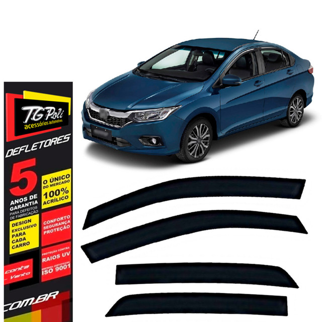 Calha de Chuva Honda City 2015 a 2021 4 portas TG Poli Defletor Portas Protetor Janelas Fumê