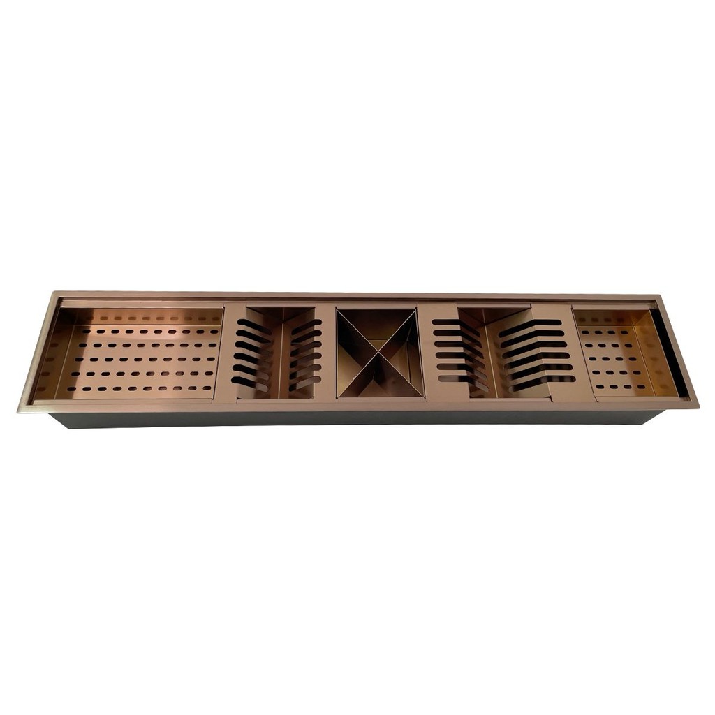CALHA GOURMET CANAL ORGANIZADOR ESCORREDOR ÙMIDA AÇO INOX 90cm ROSÊ Utilizado para suporte de louças, copos, talheres e utensílios de cozinha após a lavagem e enxágue. Tradicionalmente conhecido como escorredor de louças, a calha úmida vai completar sua cozinha e espaço gourmet. Trazendo praticidade e sofisticação para seu projeto, pode ser instalada sobreposta ou embutida irá coletar toda água dos escorredores e escoará diretamente pelo esgoto através de um dreno no centro da peça o qual poderá ser ligado no sifão da cuba ou em um ponto exclusivo de esgoto para calha. Desenvolvido em aço inox de alta qualidade, com chapa de 1,0 milímetros de espessura e acabamento acetinado escovado, alia praticidade, modernidade e beleza ao seu ambiente. A pronta entrega, acompanha válvula sifão e todos os módulos da imagem, que são projetados para perfeita mobilidade tendo assim um encaixe perfeito e podendo ser posicionados da forma que desejar, auxiliando o processo de lavagem e enxague de louças, copos, talheres e utensílios de cozinha Medidas externas: 900 x 190 x 140 mm (C x L x P) Medida útil: 880x160x140 mm Profundidade: 140 mm Conjunto de Módulos contém: 02 módulos para pratos (total para 12 pratos) 01 módulo para copos 01 módulos com 04 recipientes para talheres e utensílios 01 módulo para esponja ou outros utensílios ESPECIFICAÇÕES TÉCNICAS: - Marca: STILLUS HOME - Referência do Modelo: CAL-008 - Acabamento: Aço inox Rosê - Material: Aço Inoxidável - Comprimento: 90 cm - Largura: 19 cm - Profundidade: 14 cm - Furo para válvula de 3 1/2" - Peso bruto (com embalagem): 6,5 Kg - Acompanha Sifão Completo - Acompanha Válvula em Aço Inox de 3 1/2” Recomendações de Uso: Esta peça contém bordas cortantes. Manusear com cuidado. Não usar ácido muriático, água sanitária ou qualquer outro solvente para lavar objetos na pia. Na reforma ou construção, proteger a pia para não deixar sobre a mesma, pó de cimento ou gesso. Enxaguar e secar bem a peça após o uso. Nunca deixar objetos metálicos sobre a peça por períodos muito longos, para evitar a corrosão. Para manter o brilho da sua calha, recomendamos o uso da pasta para polir e remoção manchas nas superfícies de aço inoxidável. 6 MESES DE GARANTIA CONTRA DEFEITOS DE FABRICAÇÃO