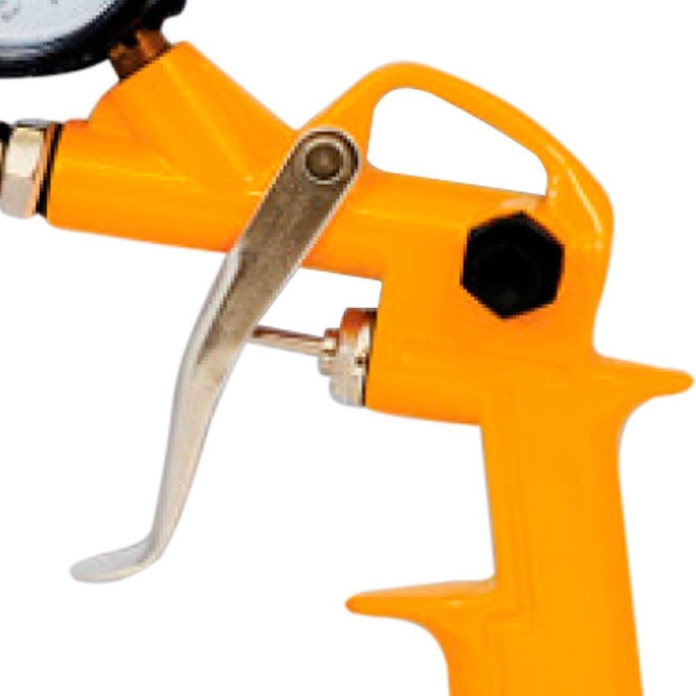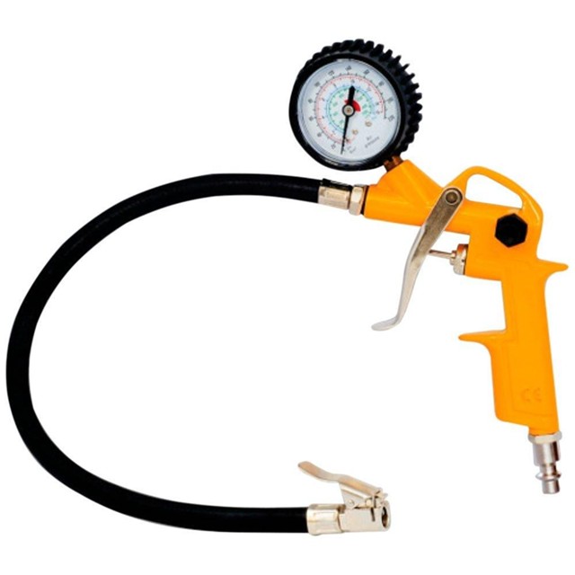 Loja do Mecânico - O que você precisa, nós temos! Calibrador e inflador fabricado em material resistente proporcionando durabilidade, enche ou esvazia sem mover o conector do bico, ergonômico e fácil de usar. Possui manômetro até 220 libras, proteção de borracha anti choque, mangueira prolongadora flexível, bico prendedor para fácil operação, gatilho para inflar e botão para alívio de pressão. - Especificações Técnicas: :: Escala: 0 a 220 psi :: Pressão máxima: 90 psi/kgf/cm2 :: Entrada de ar: 1/4 Pol. engate rápido :: Peso: 0,4 kg - Garantia: 6 meses