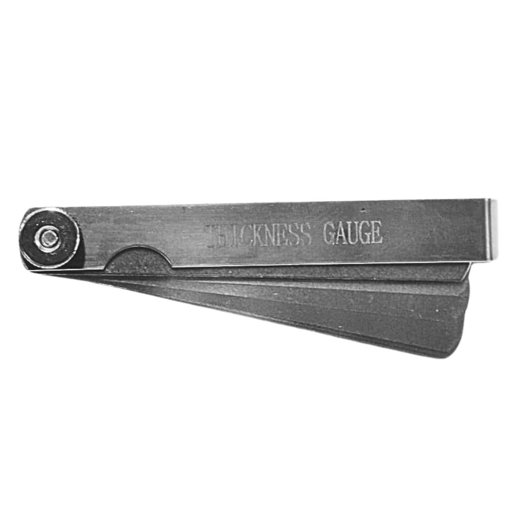 Calibre de folga 31 laminas, para comprovar e ajustar o espaço entre duas peças, como tolerância de válvulas, folga nas velas de ignição e contatos do distribuidor, lâminas de aço endurecido e temperado, gravadas com medidas em polegadas e milímetro. Indicado para Calibrar Folgas em Velas de Ignição em Veículos. Comprimento: 105mm Espessuras: 0008(0.02mm), 0012(0.03mm), .0015 (.04mm).002 (.05mm), .0025 (.06mm), 0028(0.07mm), .003 (.08mm), .004 (.10mm), .005 (.13mm), .006 (.15mm), .007 (.18mm), .008 (.20mm), .009 (.23mm), .010 (.25mm), .011 (.28mm), .012 (.30mm), .013 (.33mm), .015 (.38mm), .016 (.40mm), .018 (.45mm), .020 (.50mm), .022 (.55mm), .024 (.60mm) e .025 (.63mm), .026 (0.65mm), .0.26 (0.65mm), .028 (0.70mm), .030 (0.75mm), .032 (0.80mm), .0.34 (0.85mm), .036 (0.90mm) FOTOS DO PRODUTO MERAMENTE ILUSTRATIVAS, FAVOR CONSULTAR A DESCRIÇÃO ACIMA (valores podem estar arredondados na ferramenta