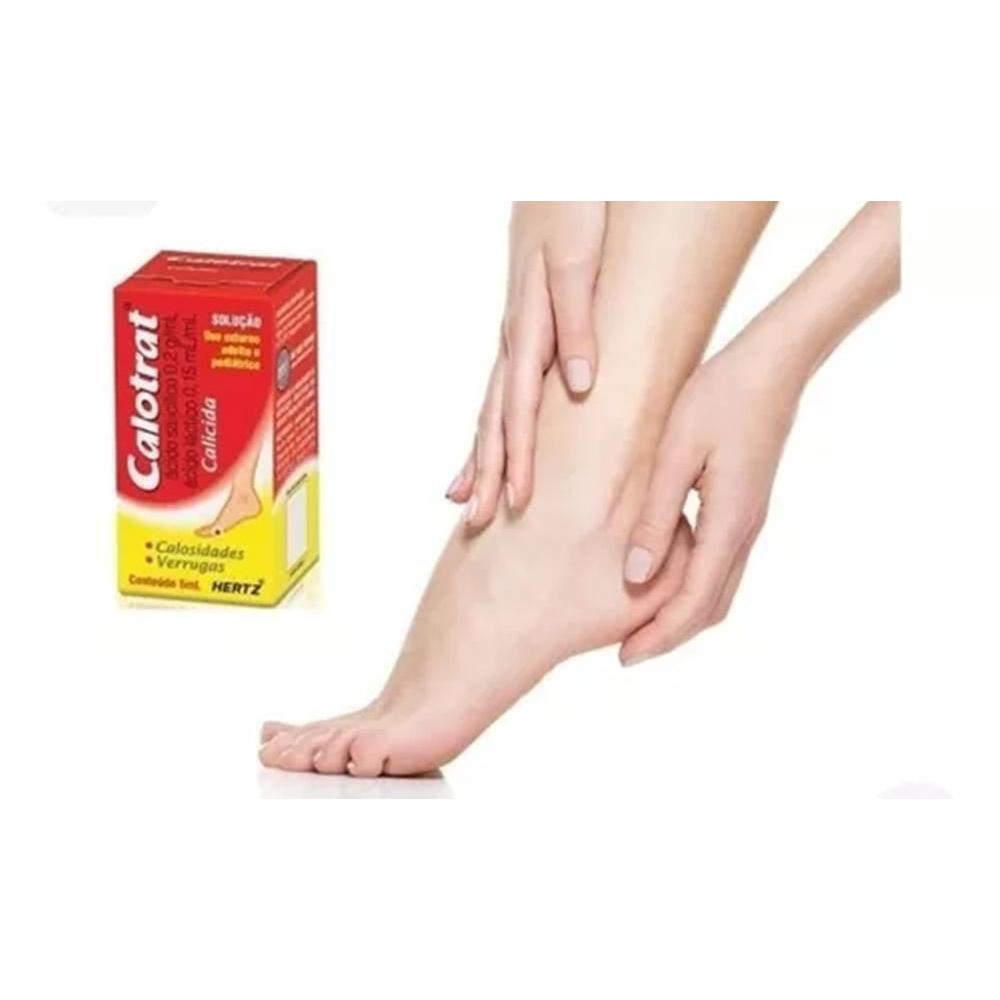 Indicações: É indicado para alívio da dor e para a eliminação de calos, calosidades e verrugas. Contraindicações: O produto é contraindicado para pacientes com hipersensibilidade aos componentes da fórmula. Não deve ser utilizado por pacientes com diabetes, doença vascular periférica e inflamação ou infecção cutânea, a não ser sob prescrição médica. Não é recomendado para uso em crianças menores de 2 anos, exceto sob orientação médica. Não deve ser utilizado durante a gravidez e lactação. Precauções: Produto restrito para uso externo. Não usar sobre pintas, marcas de nascimento, verrugas não habituais sobre as quais crescem pêlos, verrugas genitais, no rosto ou em membranas mucosas. Reações adversas: Irritação cutânea. Advertência do Ministério da Saúde SE PERSISTIREM OS SINTOMAS O MÉDICO DEVERÁ SER CONSULTADO. ÁCIDO LÁTICO + ÁCIDO SALICÍLICO - CALOTRAT COM 5 ML É UM MEDICAMENTO. SEU USO PODE TRAZER RISCOS. PROCURE UM MÉDICO E O FARMACÊUTICO. LEIA A BULA.