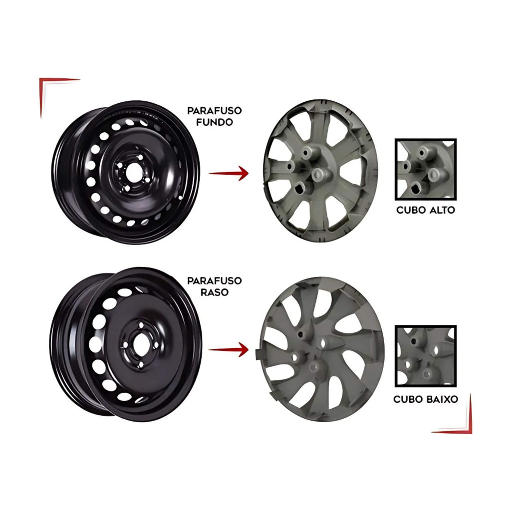 A calota Grid visa dar um acabamento nas rodas, com proteção, sofisticação e qualidade. Fabricada com o plástico PP, a calota tem alta resistência à fratura por flexão ou fadiga, tendo assim mais durabilidade e perfeito encaixe. Especificações - ARO: 14"; - CUBO: CUBO BAIXO; - FIXACAO: FIXAÇÃO POR PARAFUSO; - COMPATÍVEL: EXCETO STRADA / WEEKEND; Características: - Marca:GRID - Modelo:093CB-PTA-E *Imagens Meramente Ilustrativas* Conteúdo da Embalagem: - Jogo com 4 Calotas