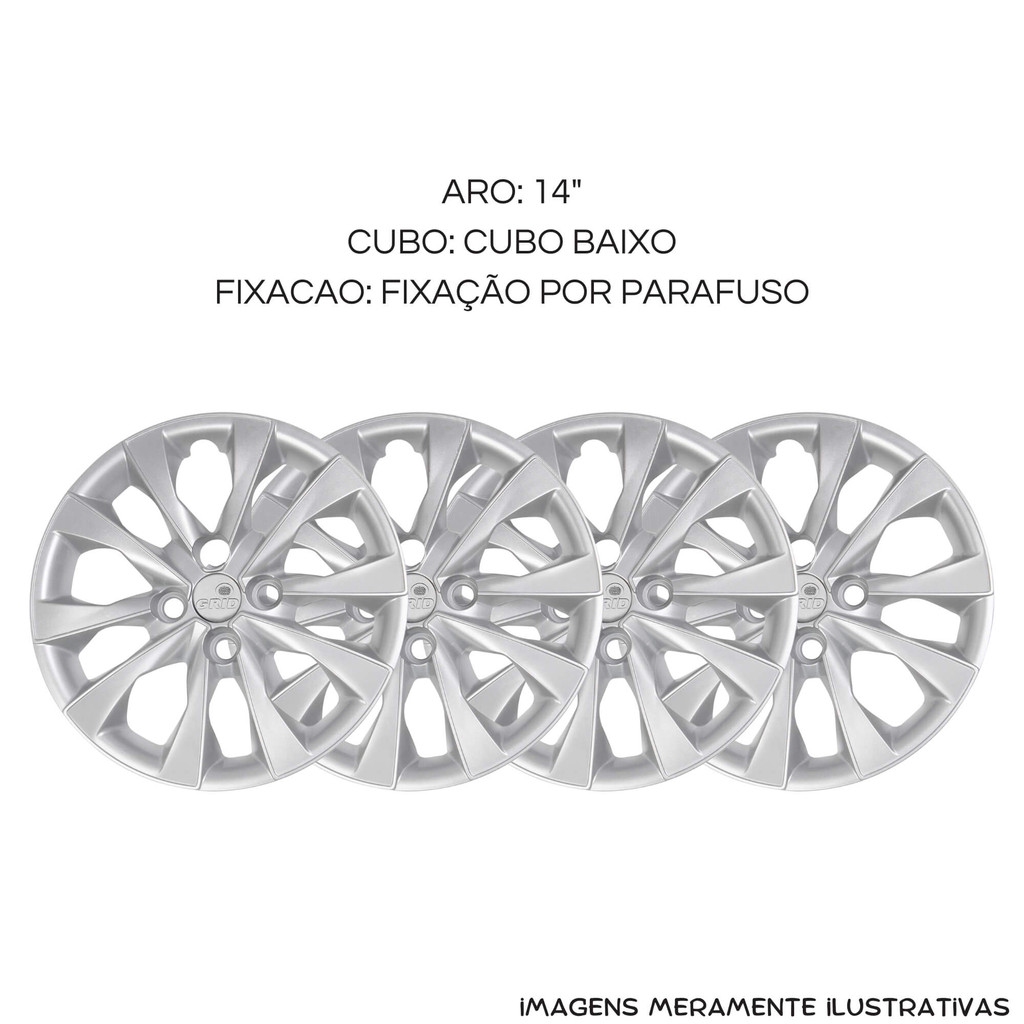CALOTA ARO 14" PRATA – MODELO MOBI 2021 Especificações:- Compatível com: Fiat Argo, Fiat Mobi e Fiat Palio (2021) - Aro: 14" - Cubo: Baixo - Fixação: Por parafuso - Cor: Prata - Material: Plástico ABS de alta resistência - Acabamento: Pintura automotiva durável e resistente - Encaixe Preciso: Desenvolvida para proporcionar fixação firme e segura, garantindo estabilidade ao rodar. - Alta Durabilidade: Produzida em ABS reforçado, material resistente a impactos, variações climáticas e desgaste diário. - Visual Moderno: Acabamento sofisticado na cor prata, realçando o design original do veículo. - Fixação Segura: Sistema de fixação por parafuso, garantindo máxima firmeza e evitando perdas inesperadas. - Instalação Simples: Fácil e rápida de instalar, sem necessidade de adaptações ou ferramentas especiais. Ideal para substituir ou renovar as calotas do seu Fiat com qualidade e estilo! Garanta já a sua e dê um toque novo ao seu carro! Características: - Marca: Grid - Modelo: 293CB-PTA-E / 293CB-PTA-U *Imagens Meramente Ilustrativas* Conteúdo da Embalagem: - 01 Jogo c/ 4 Calotas Aro 14" Prata Mod Fiat Mobi Argo Palio 2021 Grid