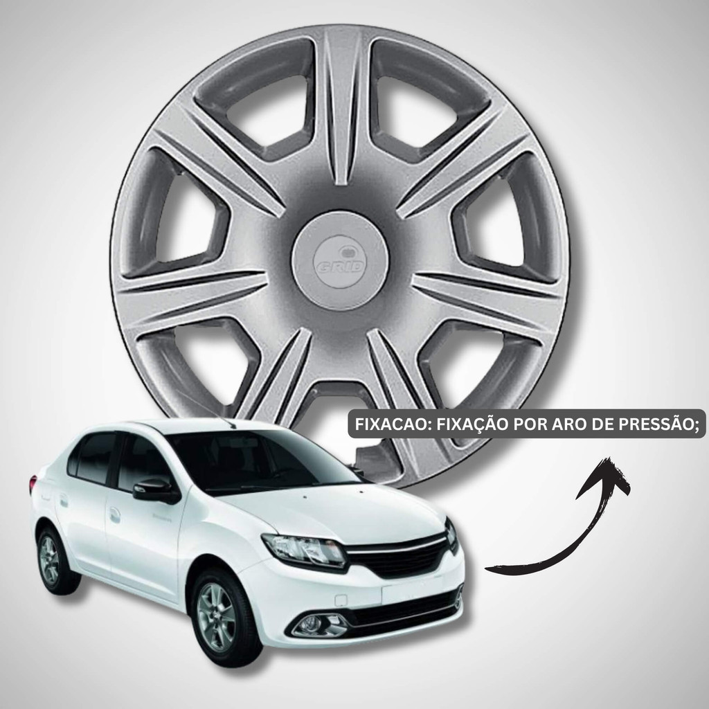 Calota Aro 15" cor Prata modelo Logan/Sendero 15/18 Jogo c/ 4 Calotas GRID - 876AR-PTA-E
