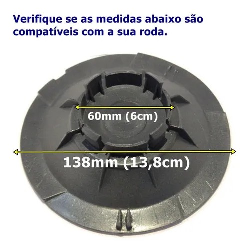 Trabalhamos apenas com produtos de QUALIDADE e ÓTIMO ACABAMENTO. ATENÇÃO: confira as medidas da calota no anúncio e compare com seu veículo antes de efetuar sua compra. COMPATIBILIDADE Rodas: ABARTH (foto no anúncio) Aro: 14 / 15 / 17 ESPECIFICAÇÕES Cor: Prata Material: Plástico ABS Logo: Emblema da FIAT vermelho/azul Conteúdo da embalagem: 01 UNIDADE DIMENSÕES - FOTOS NO ANÚNCIO Diâmetro: 138mm (13,8cm) Diâmetro entre as garras: 60mm (6cm) Altura das garras: 15mm (1,5cm) e 10mm (1cm) Ainda tem dúvidas? Nos envie uma pergunta!