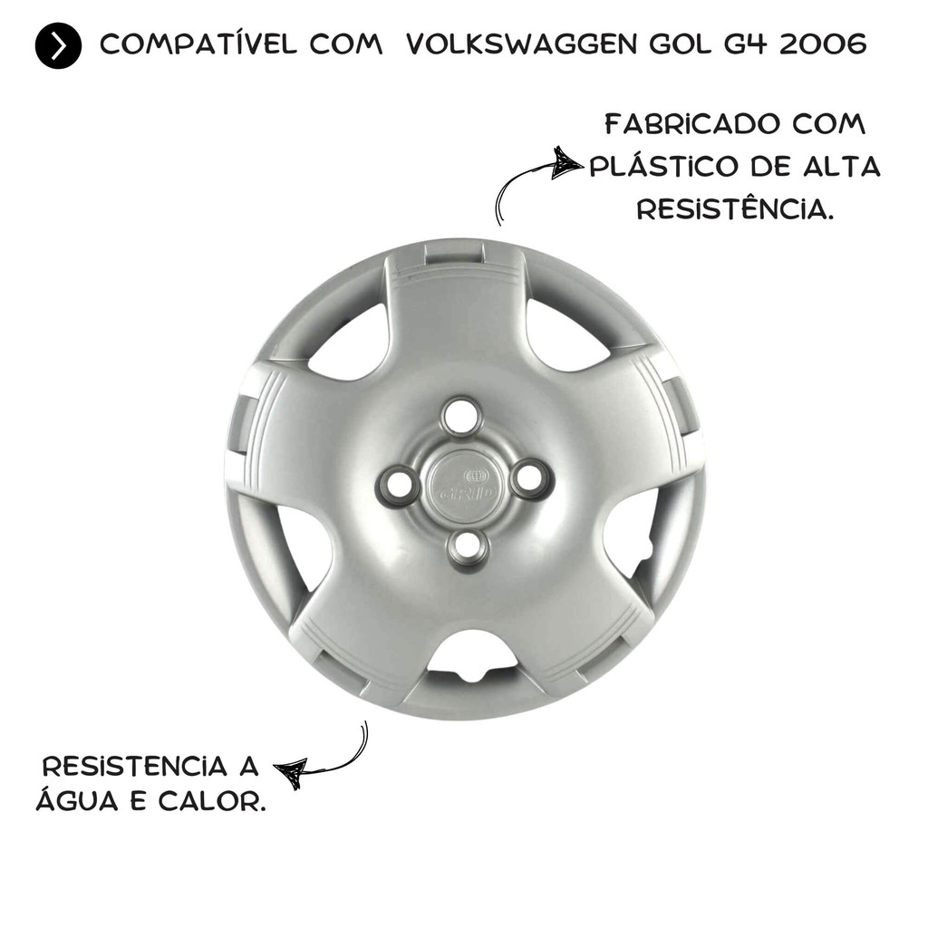 Calota Prata Aro 13" Gol G4 2006 Cubo Alto (Jogo c/ 4 Calotas) Grid - 060CA-PTA-E