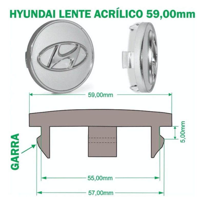 Calotinha Centro Roda Hyundai Tucson IX35 Santa Fé Vera Cruz Prata Miolo Emblema Cromado 60mm