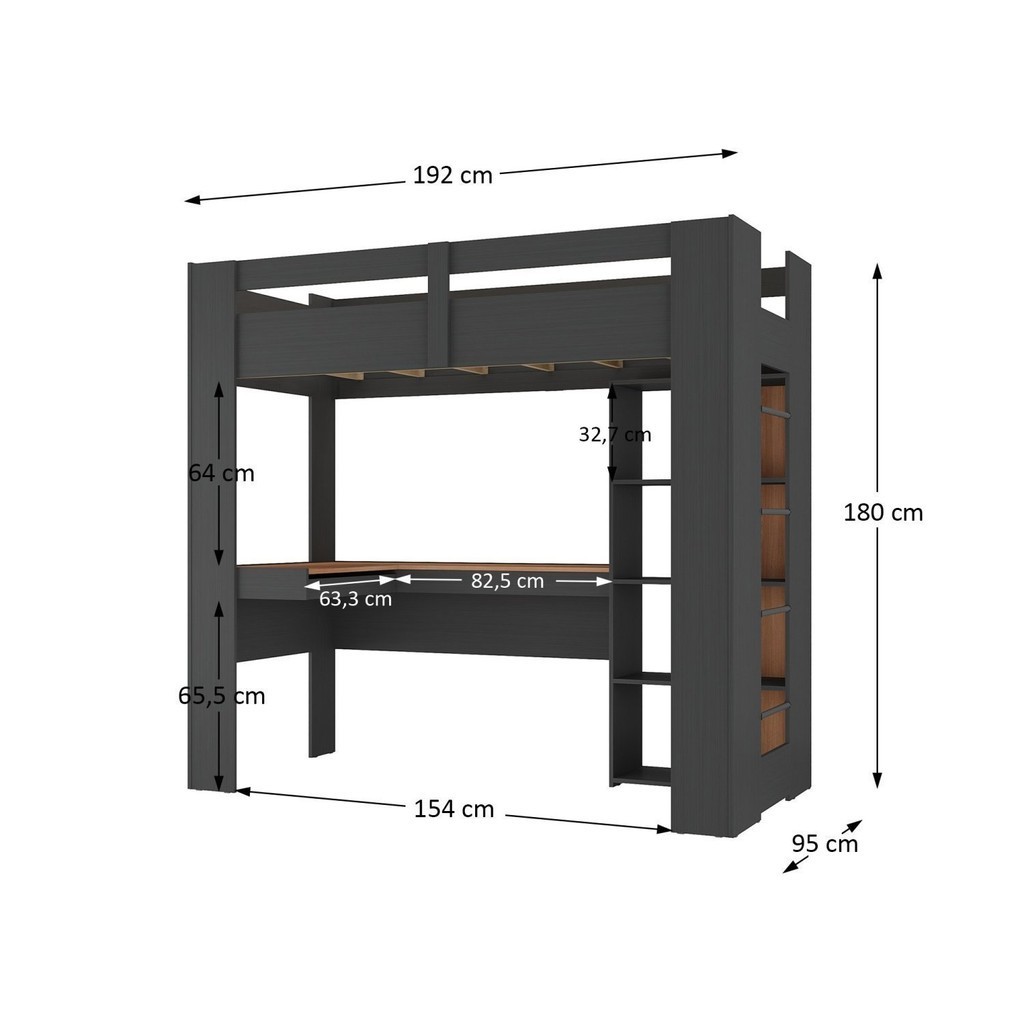 Cama Alta Infantil/juvenil Multifuncional com Escrivaninha Penteadeira Agatha Grafite/Nogal