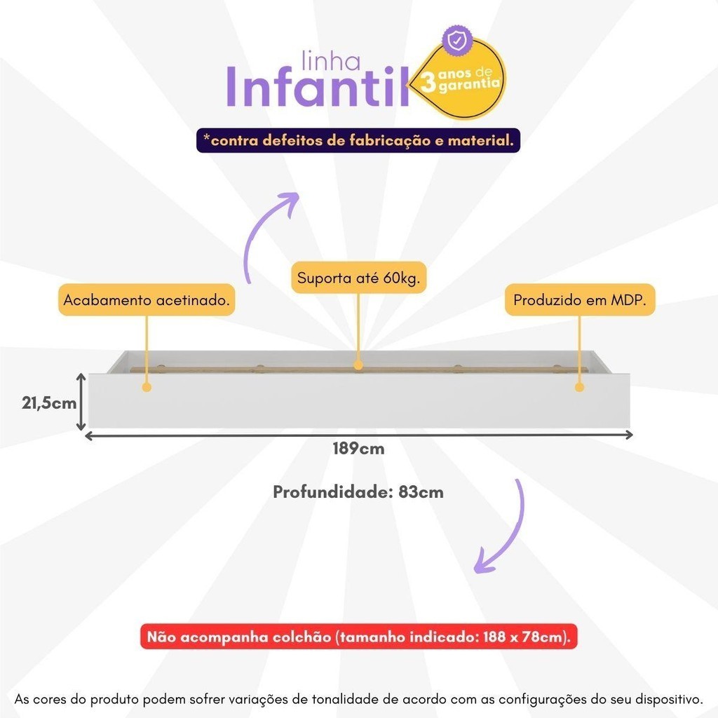 Cama Auxiliar para Colchão 78x188cm Cocadinha Multimóveis BB354