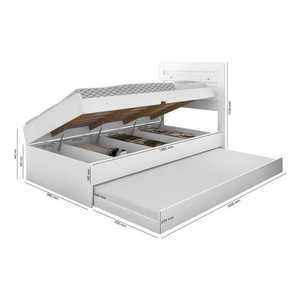 Cama Baú Framar Móveis Larissa Solteiro com Auxiliar Cor Branco