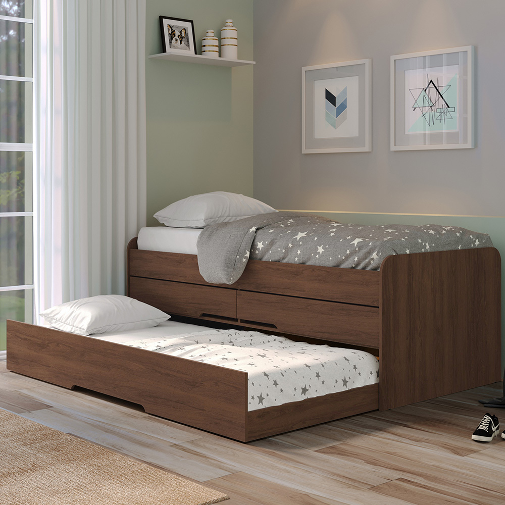 Cama Bicama Quarto Solteiro Juliette com Auxiliar e Gavetas