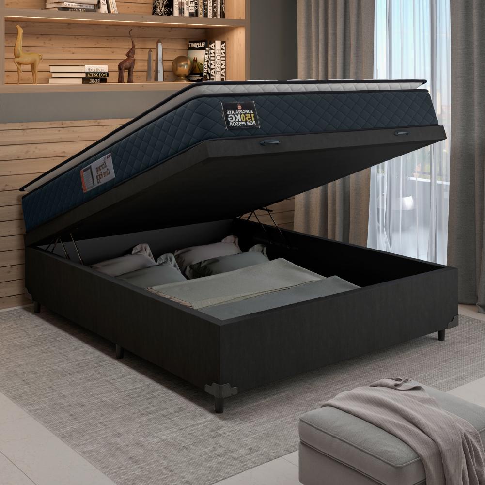 Cama Box Baú Casal Colchão Espuma D45 Pillow Top Strong 138x188x65cm Cinza/Preto Hellen - Suporta at