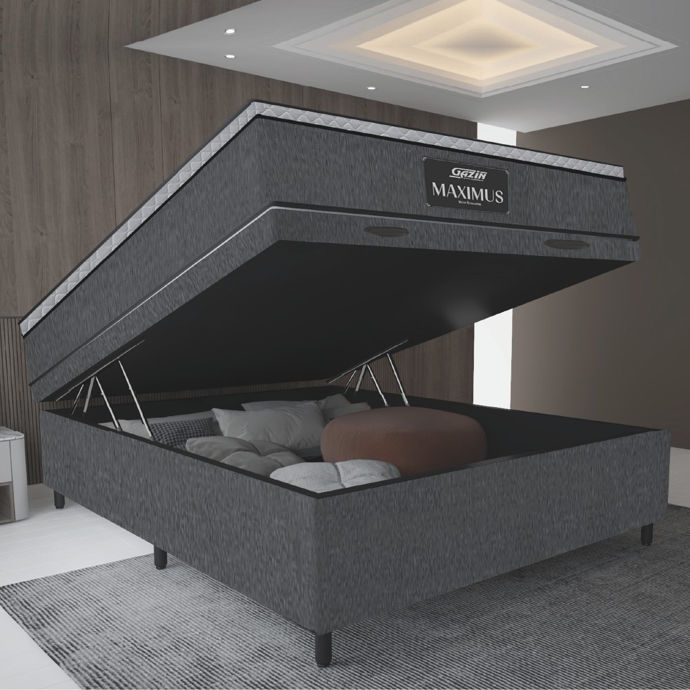 Cama Box Baú Casal Colchão Gazin Maximus Molas Ensacadas 138x188x65cm Linho Grafite / Preto