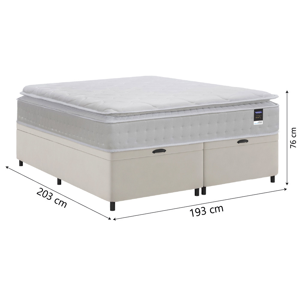 Cama Box Baú Casal King Colchão Gazin Com Molas Ensacadas Tower New 193x203x76cm Branco
