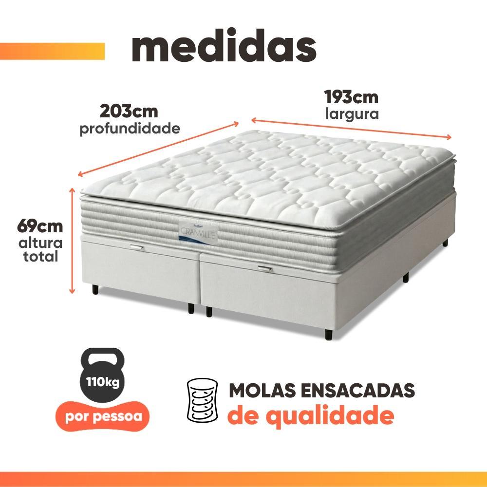 Cama Box Baú Casal King Colchão Molas Ensacadas Granville Com Pillow 193x203x69cm Branco