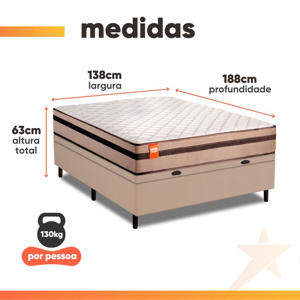 Cama Box Baú Casal Molas Ensacadas Bali 138x188x63cm