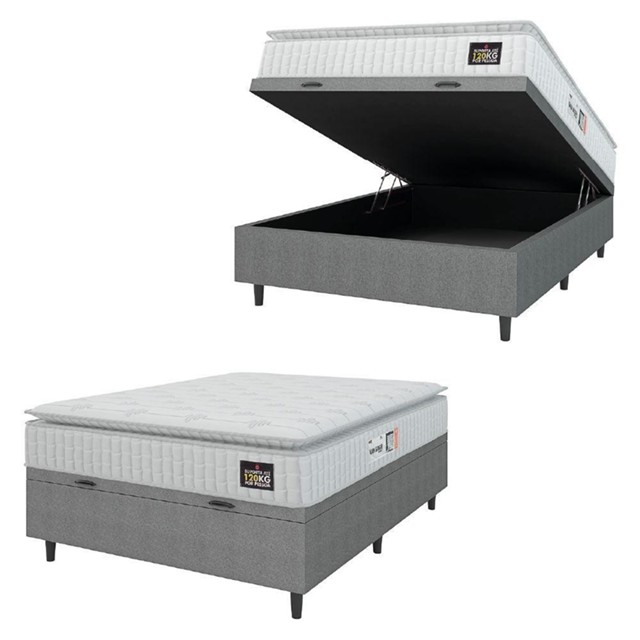 Cama Box Baú Colchão Casal Espuma D33 Vangogh Pillow Top 138x70cm Branco/cinza Hellen Branco