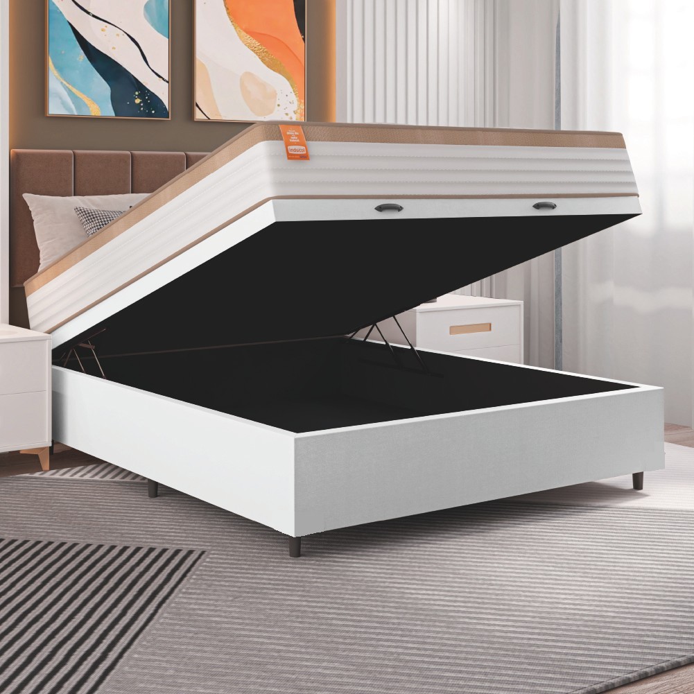 Cama Box Baú Colchão Casal Molas Ensacadas Real 138x188x68cm Linho Branco / Bege Inducol - Suporta até 130kg por Pessoa