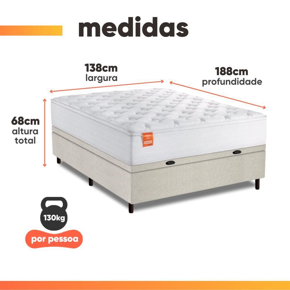 Cama Box Baú Colchão Casal Molas Ensacadas Real 138x188x68cm Linho Branco Inducol - Suporta até 130kg por Pessoa