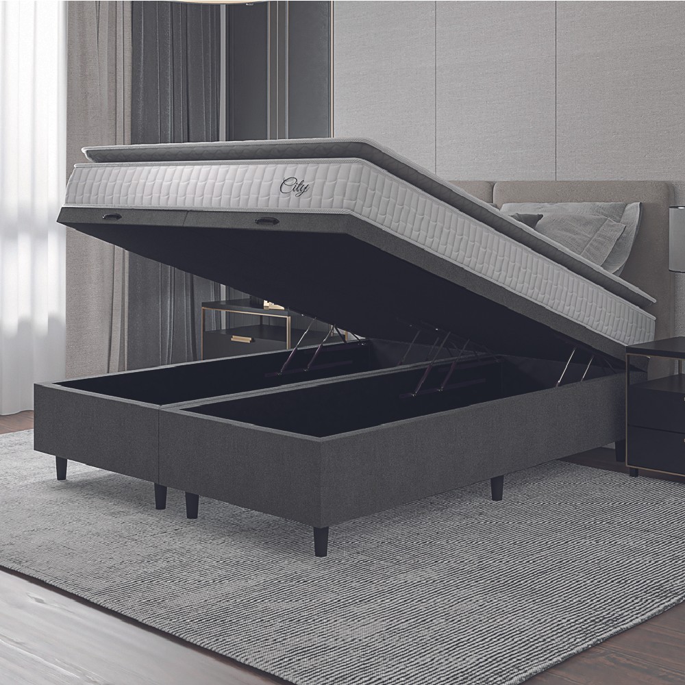 Cama Box Baú Colchão Casal Queen Molas Ensacadas City Pillow Top 158x198x64cm Branco / Cinza Hellen