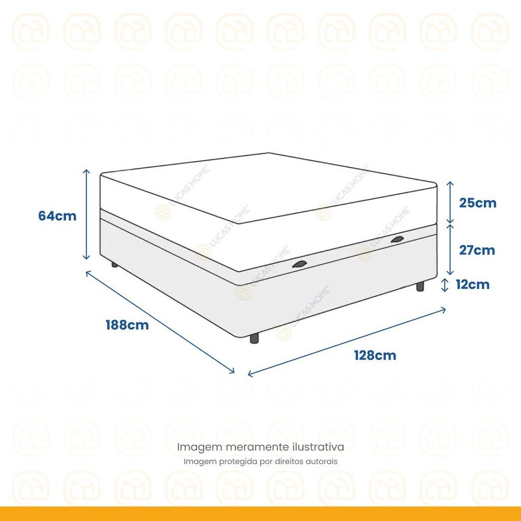 Sejam bem-vindos(as) a Lucas Home! O Conjunto Cama Box Baú + Colchão De Molas Ensacadas AirTech SpringPocket Ortobom é uma combinação exclusiva da Lucas Home que oferece uma solução completa na aquisição de sua nova cama; O Colchão De Molas Ensacadas AirTech SpringPocket Ortobom é indicado para pessoas de até 150kg proporcionando conforto firme, o que lhe confere firmeza suficiente para preservar sua coluna durante o sono sem comprometer seu conforto; A Cama Box com Baú é a alternativa ideal para maior aproveitamento do quarto, pois oferece espaço extra e praticidade; Produto de alta durabilidade, resistente e excelente acabamento, em material sintético que lhe confere requinte e sofisticação em qualquer ambient.. Especificações Técnicas Colchão: - Marca: Ortobom; - Proteções: Antiácaro- Antialérgico- Antifungo- Antimofo; - Acabamento: Bordado em Matelassê; - Matéria-prima: Mola Ensacada / Espuma / Tecido; - Tipo de conforto: Firme; - Peso máximo recomendado: até 150Kg (por pessoa); - Garantia: 12 Meses; - Dimensões do produto (largura x comprimento x altura)128x188x25cm. Especificações Técnicas Baú: - Marca: Lucas Home; - Material: Madeira tratada; - Peso máximo recomendado: até 150Kg (por pessoa); - Altura do baú: 37cm; - Profundidade do baú:27cm; - Altura dos pés: 5 cm; - Revestimento da Cama: Material Sintético; - Garantia: 12 meses; - Dimensões do produto (largura x comprimento x altura) 128x188x42cm.