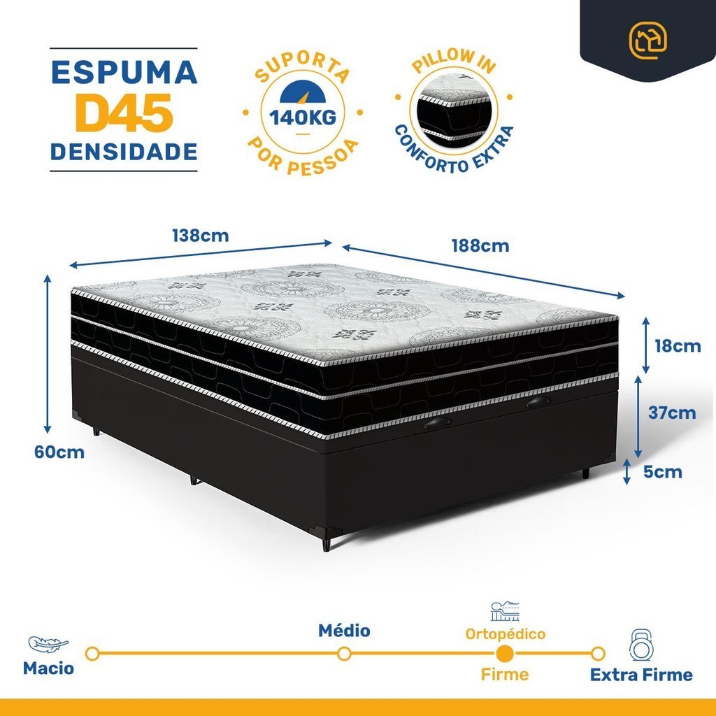 Cama Box Baú com Colchão de Espuma D45 Pillow In Anjos OrtoConfort Casal 138cm