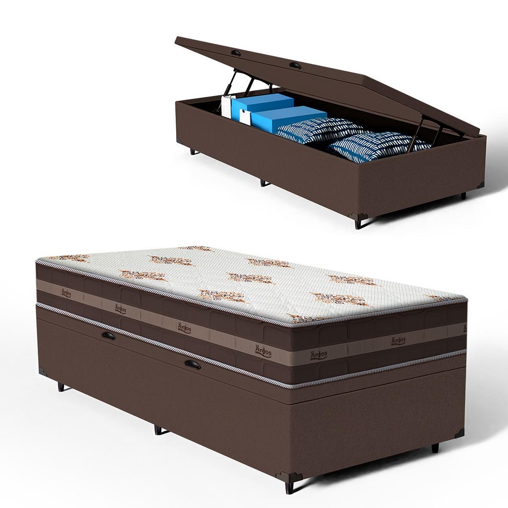 Cama Box Baú com Colchão de Molas Anjos Classic Pocket Solteiro King 96cm
