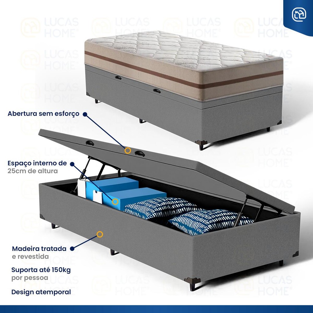 Cama Box Baú com Colchão de Molas Ensacadas Classic Pocket Solteiro 78cm