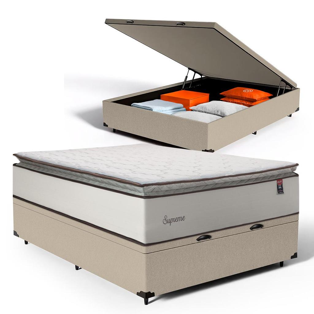 Cama Box Baú com Colchão de Molas Ensacadas Pillow Top Supreme Lux Casal 138cm