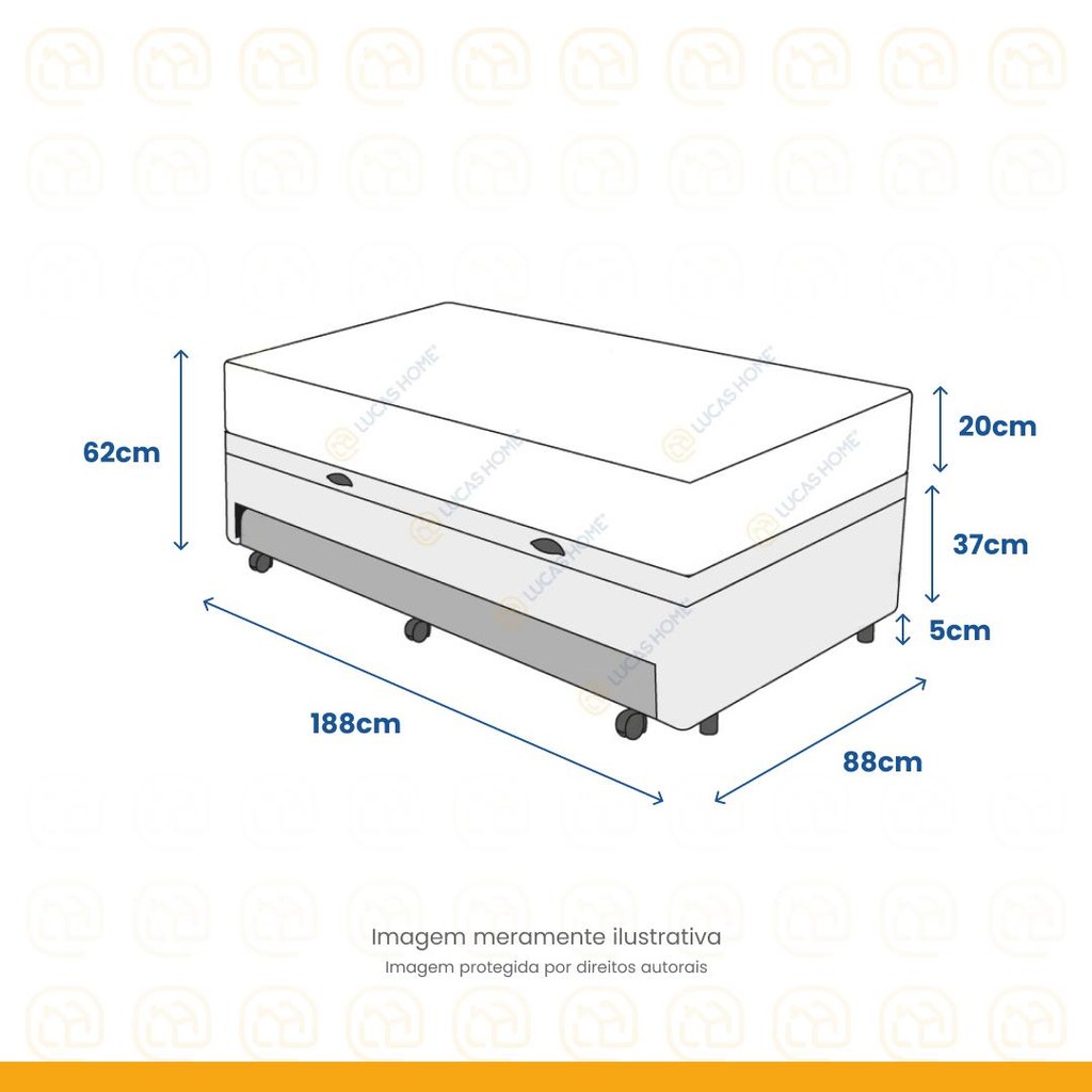 Sejam bem-vindos (as) a LUCAS HOME, a Cama Box Baú e Auxiliar Solteiro Marrom + Colchão de Molas Ensacadas - Anjos - Classic é uma combinação exclusiva da Lucas Home Center. Que oferece um combo de praticidade e agilidade na aquisição. Sejam bem-vindos (as) a LUCAS HOME, o Colchão De Molas Ensacadas Classic Anjos é confeccionado em molas ensacadas de alta qualidade e conta com uma camada de espuma D28 assegurando toda a sustentação das molas ensacadas sem perder o conforto da espuma. Sua lateral é em linho e a parte superior bordada em matelassê. Possui tratamento actguard, anti ácaros, bactérias e fungos. Indicado para pessoas de até 120kg proporcionando conforto macio, o que lhe confere conforto extra durante o sono sem comprometer sua coluna A cama Box com Baú e Auxiliar é confeccionada com materiais de qualidade, tornando o produto de alta durabilidade, resistência e um excelente acabamento. A alternativa ideal para maior aproveitamento do seu quarto, Ah! Ela conta ainda com cama auxiliar, para acomodar suas visitas com maior conforto, e um baú para guardar o que você desejar. Além de linda, ela é funcional! Especificações Técnicas Colchão: - Marca: Anjos; - Tipo de Mola: Ensacada; - Proteções: Antiácaro - Antialérgico - Antifungo - Antimofo; - Acabamento: Bordado em Matelassê; - Matéria prima: Espuma/Molas/Tecido; - Tipo de conforto: Macio; - Peso máximo recomendado: até 120kg (por pessoa); - Base em Poliestireno Expandido (EPS); - Garantia: 12 meses na estrutura e 3 meses no tecido; - Dimensões do produto (largura x comprimento x altura) Solteiro: 88x188x20cm Especificações Técnicas Baú: - Marca: Lucas Colchões; - Material: Madeira tratada; - Peso máximo recomendado: até 150 Kg (por pessoa); - Altura do baú: 37cm; - Profundidade do baú: 15cm; - Altura dos pés: 5cm; - Revestimento da Cama: Material Sintético; - Revestimento da Auxiliar: Suede; - Garantia: 6 meses de garantia; - Dimensões do produto (largura x comprimento x altura) Solteiro: 88x188x42cm *IMPORTANTE: IMAGENS MERAMENTE ILUSTRATIVAS. (A LUCAS HOME não trabalha com móveis planejados. Podendo haver pequenas variações nas medidas e cores do produto/A cor do produto poderá variar de acordo com a tela de visualização/Os enfeites, eletrônicos e decoração não acompanham). **A LUCAS HOME não disponibiliza no momento o serviço de montagem, sendo de total responsabilidade do comprador. A LUCAS HOME Recomenda que a montagem seja feita por um profissional da área. **ATENÇÃO: Verifique se as dimensões dos produtos passam por elevadores, portas, escadas e corredores. A LUCAS HOME Não se responsabiliza pelo transporte dos produtos por escadas, guinchos, içamentos ou quaisquer outros meios específicos de transporte.