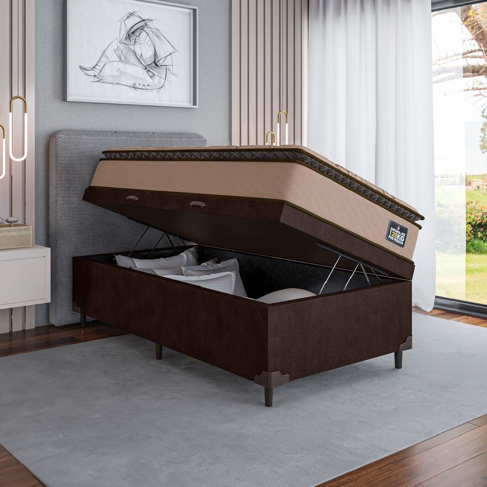 Cama Box Baú Solteiro Colchão Espuma D33 Pillow Top Van Gogh 88x188x70cm Marrom Hellen - Suporta até