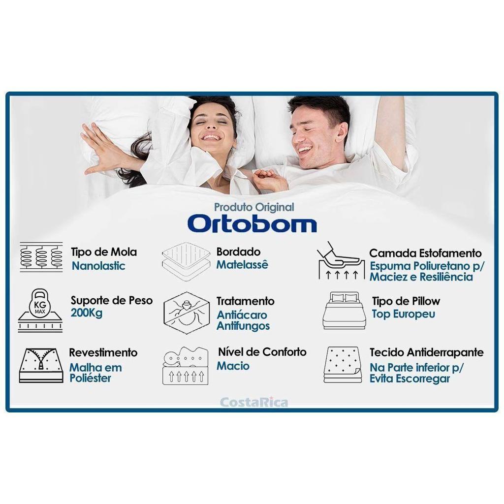 Cama Box c/Auxiliar Casal: Colchão Ortobom Nanolastic Physical + Base CRC Courano Black(138x188)