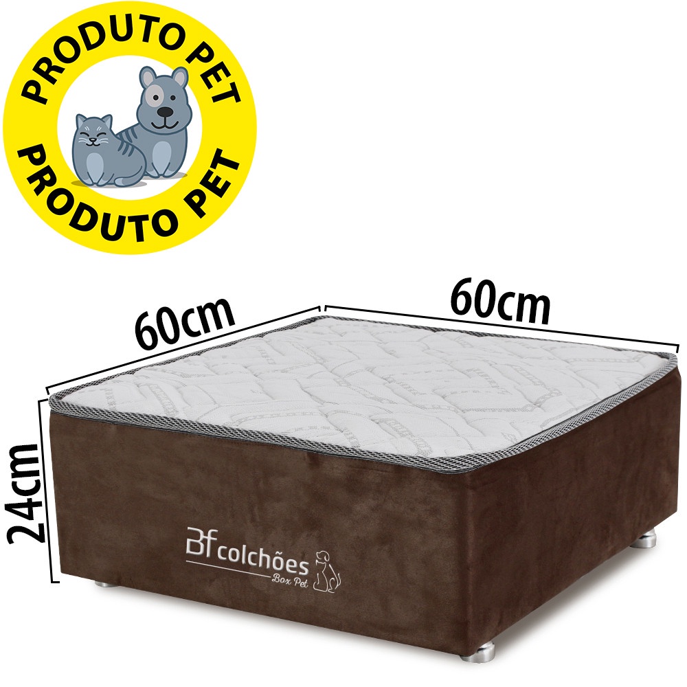 Cama Box Caminha para Cachorro e Gato em Suede Marrom + Lençol Impermeável 60X60x24cm BF Colchões