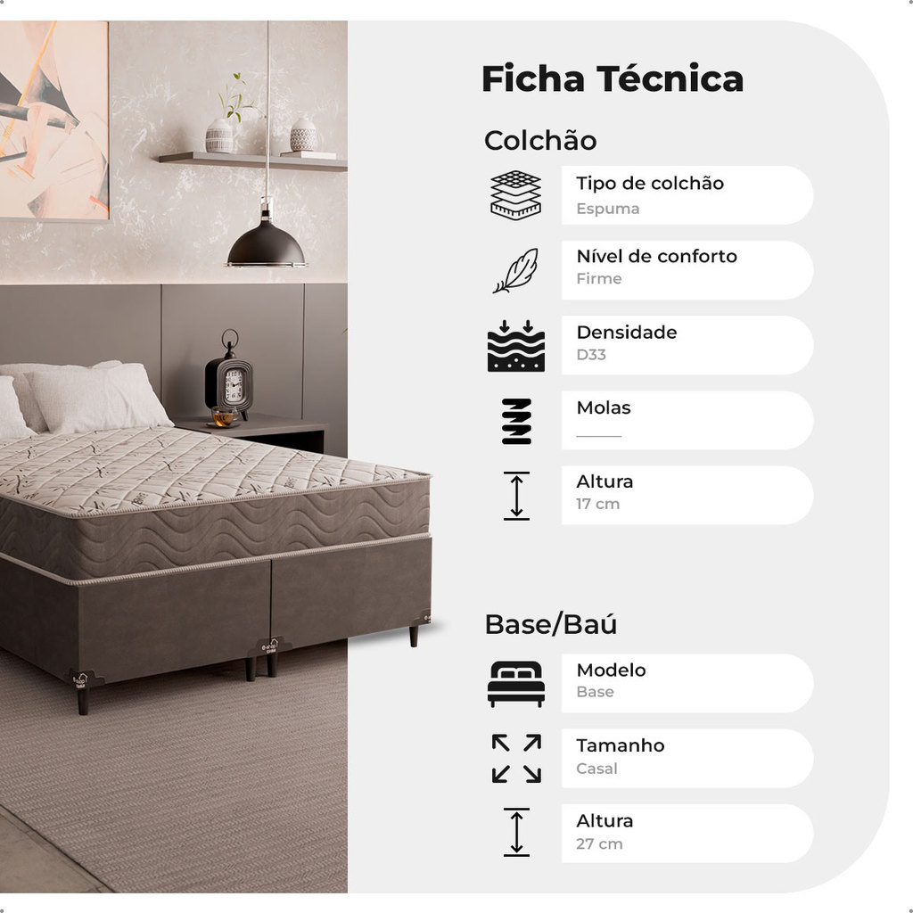 Cama Box Casal Bipartido + Colchão D33 One Face - Suede Cinza