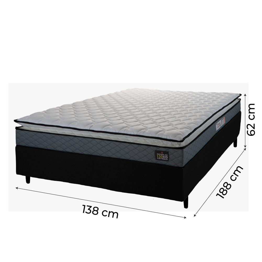 Cama Box Casal Colchão Espuma D45 Pillow Top Strong 138x188x62cm Cinza/Preto Hellen - Suporta até 15