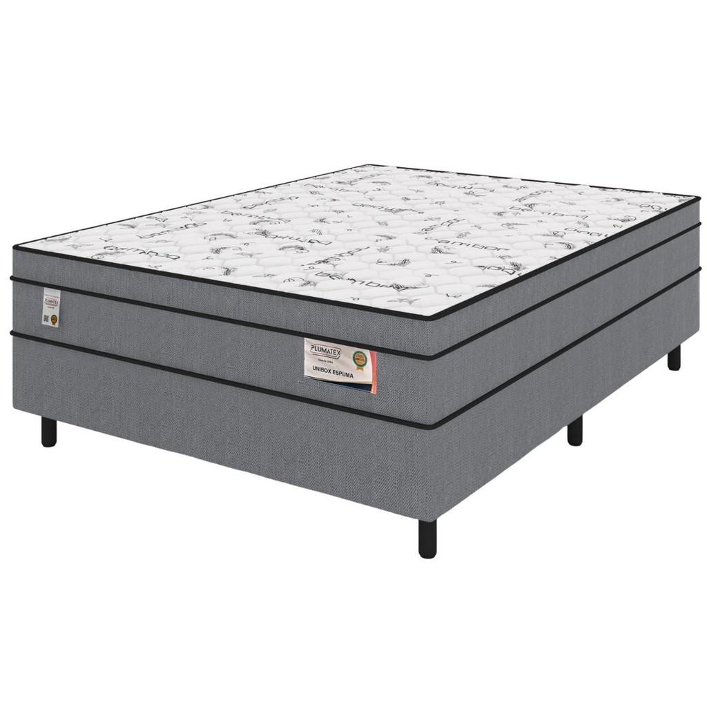 Garanta noites de sono tranquilas e revigorantes com a Cama Box Casal Plumatex Unibox Spring. Com design moderno e acabamento sofisticado na cor cinza, este conjunto oferece não apenas conforto, mas também durabilidade e praticidade para o seu quarto. Características Principais: Sistema de Molas Ensacadas – Proporciona suporte individualizado, adaptando-se aos contornos do corpo e minimizando a transferência de movimentos, garantindo uma noite de sono sem interrupções. Espuma D26 de Alta Qualidade – Camada de espuma que assegura maciez e sustentação equilibradas para o corpo. Firmeza Intermediária – Pensada para atender diversos perfis de usuários, oferecendo o equilíbrio perfeito entre conforto e suporte. Tratamento Antiácaros e Hipoalergênico – Ideal para pessoas alérgicas, proporcionando um ambiente mais saudável e livre de agentes alergênicos. One Side – Não é necessário virar o colchão, facilitando a manutenção diária. FICHA TÉCNICA • MODELO: Cama Conjugada • MARCA: PLUMATEX • TAMANHO: Casal • DIMENSÕES: 138 cm (largura) x 188 cm (comprimento) x 59 cm (altura) • PESO DO PRODUTO DESEMBALADO: 45,1 • QUANTIDADE DE VOLUMES ENTREGUES: 1 • COR PREDOMINANTE: Cinza • REVESTIMENTO SUPERIOR/TAMPO: Tecido 100% Poliéster 64g/m² • REVESTIMENTO LATERAL: Tecido 53% Polipropileno 47% Poliéster - 190g/m² • PRODUTO COM PILLOW TOP: Não • PILLOW TOP DUPLO: Não • TIPO DE ENCHIMENTO: Molas Ensacadas+Espuma D26 • QUANTIDADE DE MOLAS POR METRO QUADRADO: 170 • POSSUI MEMORY FOAM: Não • EMBALADO À VÁCUO: Não • PESO MÁXIMO SUPORTADO POR PESSOA (EM KG): 100Kg • FIRMEZA DO COLCHÃO: Intermediário • É ORTOPÉDICO: Não • É HIPOALERGÊNICO: Sim • É ANTIÁCAROS: Sim • É ONE SIDE: Sim • COLCHÃO NA CAIXA: Não • PRAZO DE GARANTIA: 6 meses INFORMAÇÕES IMPORTANTES • Nossos serviços abrangem a entrega do produto até a porta da residência ou do condomínio do cliente, e não incluem a entrada na residência. • A desembalagem e o descarte adequado das embalagens são de responsabilidade do cliente. Nossos entregadores não têm permissão para transportar embalagens vazias. • É altamente recomendável que o cliente verifique as dimensões do produto que está adquirindo, garantindo que seja compatível com o espaço disponível. SOBRE A PLUMATEX • Atualmente, a Plumatex Colchões é uma das maiores empresas de colchões do Brasil. • Fundada em outubro de 1984, a Plumatex se destaca como a mais moderna e bem estruturada empresa do segmento colchoeiro, com cinco fábricas próprias instaladas nos estados de Goiás, Bahia, Paraíba, Rio de Janeiro e Maranhão, e uma fábrica terceirizada em Santa Catarina. • Sempre atentos às novas tecnologias, somos especialistas em fabricação e inovação. Produzimos colchões dos sonhos para todos os bolsos, assinados pelas nossas marcas próprias – Unique, Plumatex e Smart – e somos o fabricante exclusivo dos colchões da marca Sealy no Brasil. Completando o nosso catálogo de produtos, temos também uma linha de colchões de espumas e acessórios.