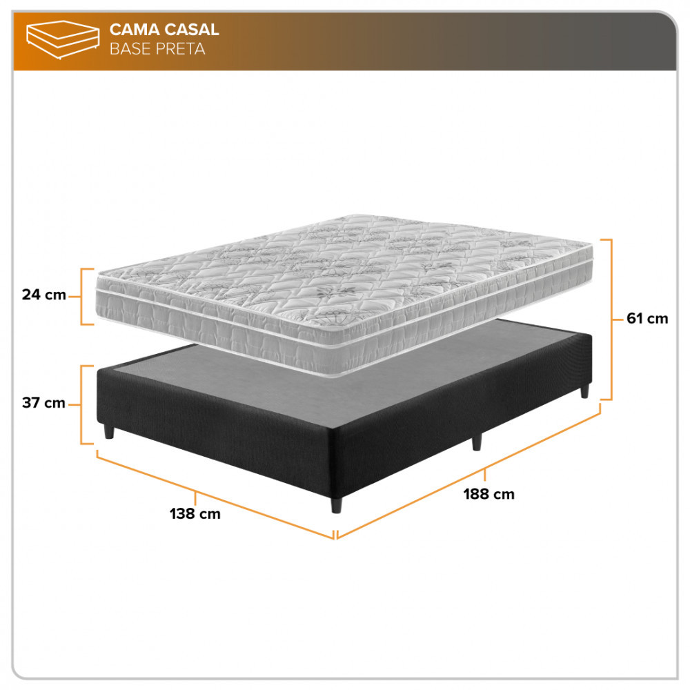 Cama Box Casal Preto + Colchão Casal Espuma D33 Hanover Orthopedic 138x188x61cm Zidi