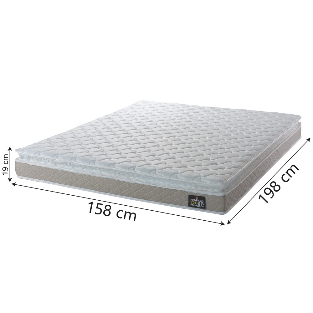 Você merece o melhor quando se trata do seu sono e bem-estar, e por isso o Colchão de Casal Queen Millenium e o Box Prince se tornam a escolha perfeita para o seu quarto! O Colchão é feito com materiais de alta qualidade, tecido Jacquard de toque macio e laterais em linho. Revestido com um tecido antiácaro e antifúngico, garantindo uma maior proteção e durabilidade, conta com Pillow Top, ou seja, uma camada extra de espuma que garante mais maciez. Ele suporta até 120 kg por pessoa. O Box é feito de suede e é excelente para você que busca um produto moderno e prático. Possui estrutura resistente e um belo acabamento, é um produto de fácil limpeza! MEDIDAS DO COLCHÃO: A = 19 cm L = 158 cm P = 198 cm MEDIDAS DO BOX: A = 38 cm / 26 cm (sem pés) L = 158 cm P = 198 cm ALTURA DOS PÉS: 12 cm PESO: 58,82 kg PESO SUPORTADO: 120 kg por pessoa MODELO: Cama Box Casal Queen Colchão Espuma D33 Pillow Top Millenium 158x198x57cm Suede Suporta Até 120 Kg Por Pessoa MARCA COLCHÃO: Hellen MARCA BOX: Prince COR: Bege/Branco REVESTIMENTO SUPERIOR: Tecido Granite 100% Poliéster + camada de espuma D20 REVESTIMENTO LATERAL: Tecido Jacquard Linum + camada de espuma D20 REVESTIMENTO INTERIOR: Espuma D33 aliada com EPS, que faz com que o colchão suporte até 120 kg por pessoa REVESTIMENTO INFERIOR: Tecido antiderrapante ESPUMA: D33 PILLOW TOP: Sim, oferecendo ainda mais sensação de conforto COLCHÃO ORTOPÉDICO: Não TECIDO BOX: Suede MATERIAL DA ESTRUTURA DO BOX: Madeira de reflorestamento PÉS: 6 MATERIAL DOS PÉS: PVC OBSERVAÇÃO: Box desmontável ITENS INCLUSOS: 1 Colchão de 1,58m e 1 box desmontável de 1,58m INSTRUÇÕES / CUIDADOS: Utilizar em local seco com passagem de ar, não dobrar, fazer giro quinzenalmente no sentido pés/cabeceira GARANTIA COLCHÃO: 12 Meses GARANTIA BOX: 3 Meses A Esplanada Móveis se responsabiliza pela entrega dos produtos adquiridos até a porta de entrada ou portaria do endereço indicado, se a portaria do condomínio permitir, as entregas são efetuadas no piso térreo e é de responsabilidade do cliente a locomoção da mercadoria até seu apartamento ou casa. Confira as dimensões do produto e certifique-se de que estão adequadas aos elevadores, portas e corredores do local da entrega. Não fazemos a montagem, desmontagem do produto e/ou portas e janelas, locomoção pela escada ou içamento pelo lado de fora do prédio. Não está incluso na entrega o deslocamento até o interior do apartamento, com ou sem elevador, ou deslocamento em locais de difícil acesso como escadarias. Caso o cliente necessite de entrega dentro das dificuldades mencionadas, deverá entrar em contato para análise e dúvidas. Certifique-se de tudo antes de finalizar a compra, evitando assim futuros desagrados ou imprevistos com a entrega.