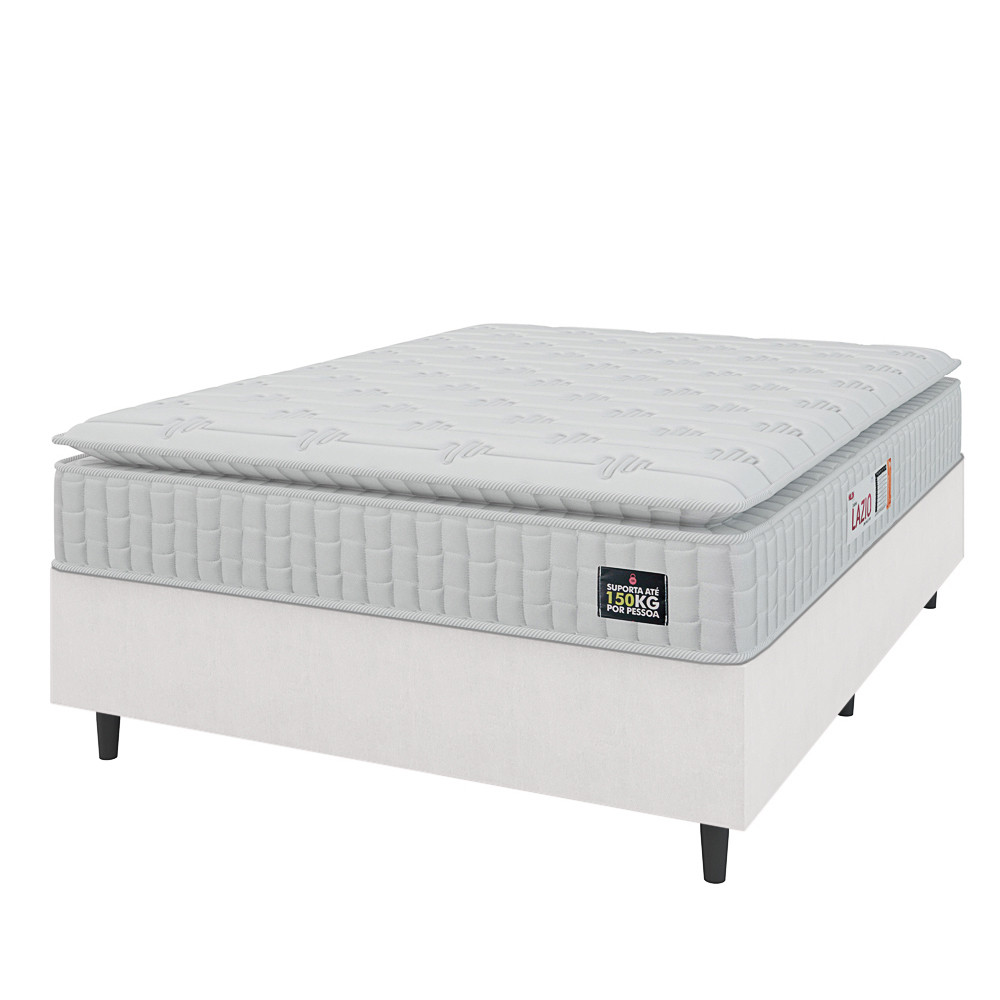 Cama Box Casal Queen Colchão Espuma D45 Lazio Pillow Top 158x198x62cm Branco Hellen