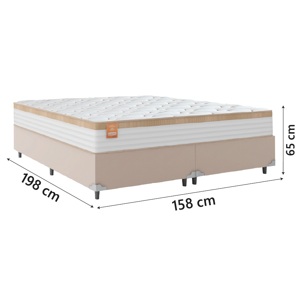 Cama Box Casal Queen Colchão Molas Ensacadas Real 158x198x65cm Branco / Bege - Suporta até 130Kg Por