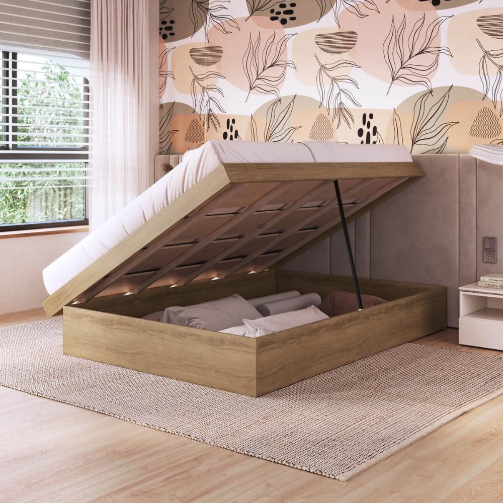 Cama Box Casal Queen com Baú CB1160 158x198cm Haste Articulável de Aço Mel - Art In Móveis