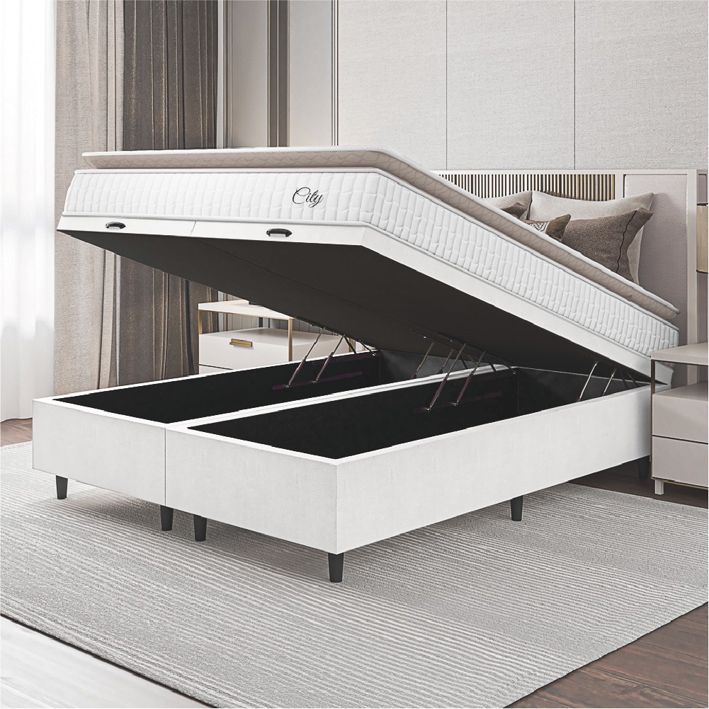 Cama Box Colchão Baú Casal King Molas Ensacadas City Pillow Top 193x203x64cm Linho Branco Hellen