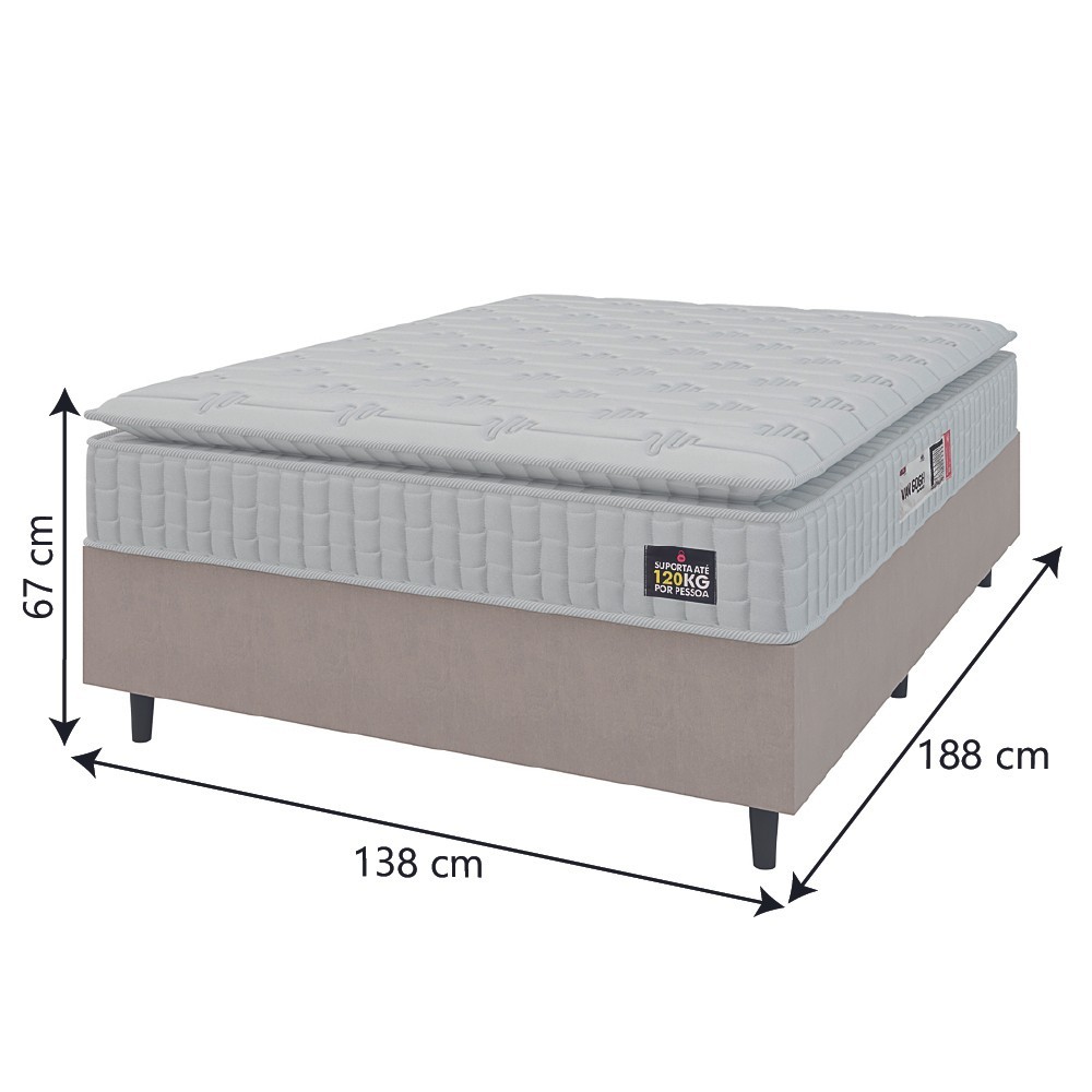 Cama Box Colchão Casal Espuma D33 Vangogh Pillow Top 138x188x67cm Branco / Bege Hellen - Suporta até 120kg por Pessoa
