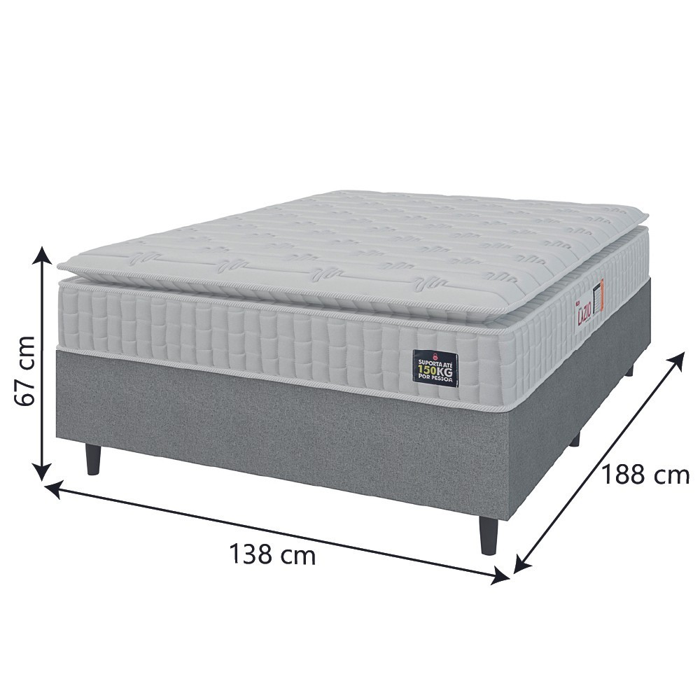 Cama Box Colchão Casal Espuma D45 Lazio Pillow Top 138x188x67cm Branco / Cinza Hellen - Suporta até 120kg por Pessoa